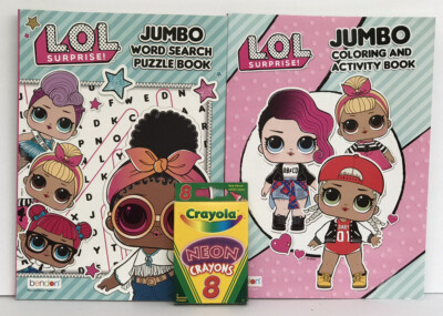 New 2 LOL Surprise Jumbo Coloring, Activity & Word Search Books + Neon Crayons | eBay