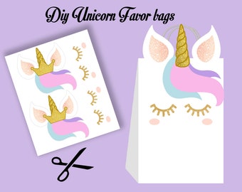 Unicorn DIY Favor Bag Template Unicorn Party Bags Printable | Etsy