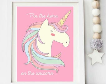 Pin the Horn on the Unicorn / Unicorn party game DIY party | Etsy